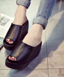 Proste, wygodne sandały na koturnie mają następujące cechy produktu:
